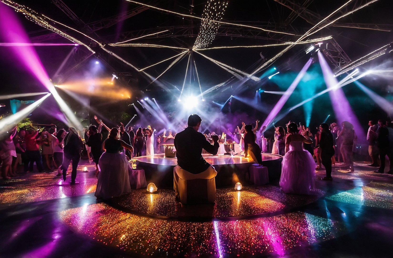 Somos expertos en crear ambientes únicos para bodas, comuniones y más. Disfruta de un servicio completo de sonido, iluminación, DJs y fotografía que hará de tu evento algo inolvidable.